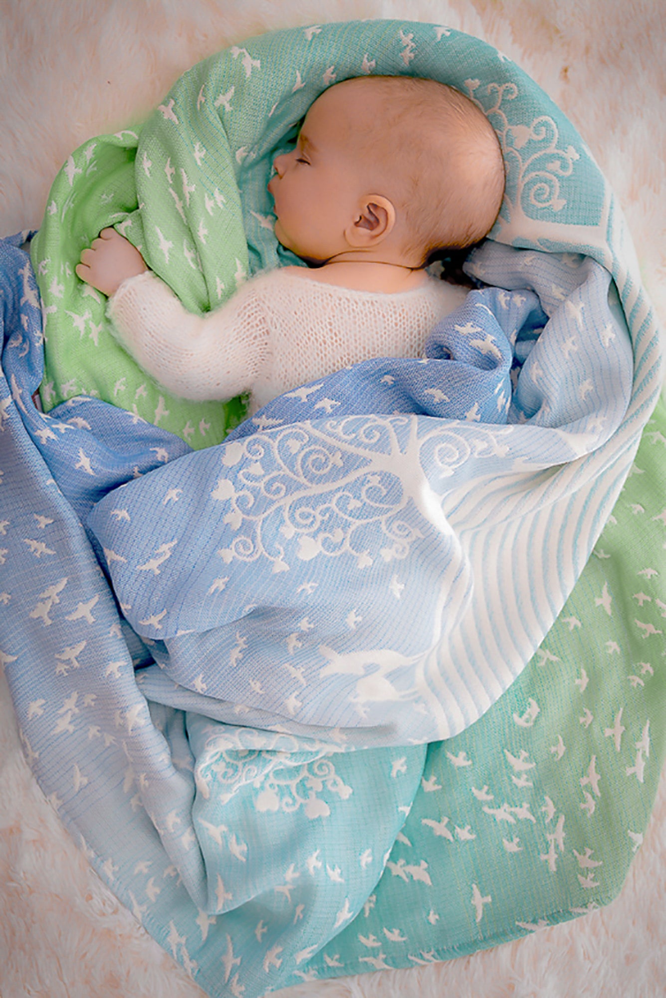 Unsere KOKADI Babydecken werden in 2-4 Lagen gewebt. Zwischen den Lagen kann sich Luft ansammeln. Diese sorgt dafür, dass dein Kind im Sommer gekühlt und im Winter gewärmt wird.