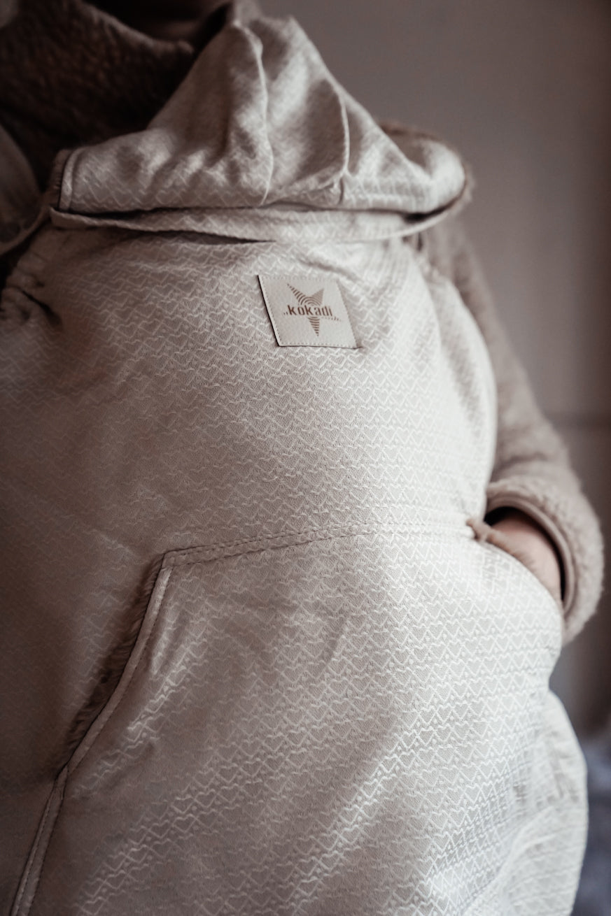 Das KOKADI TrageCover Heart2Heart Cream ist die ideale Ergänzung für deine Babytrage bei kühlem Wetter, Wind oder wechselnden Temperaturen. Das dezente Herz-Jacquard im warmen Cremeton sorgt für eine ruhige, hochwertige Optik und passt zu nahezu jeder Babytrage und jedem Outfit. Das Tragecover schützt dein Baby zuverlässig, ohne die Bewegungsfreiheit einzuschränken, und ermöglicht weiterhin ergonomisches Tragen. Dank der unkomplizierten Handhabung ist es schnell angebracht und perfekt für Spaziergänge, den Alltag und unterwegs.