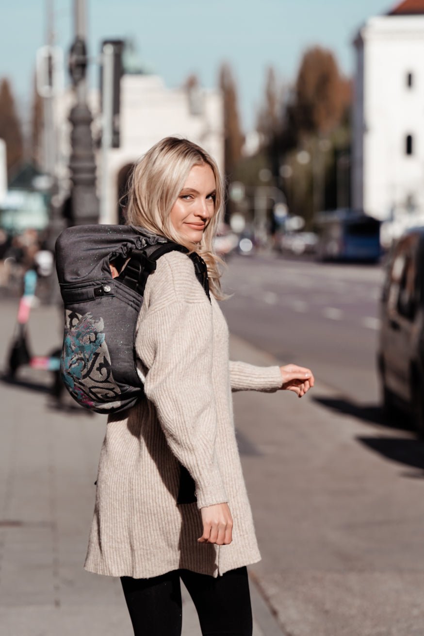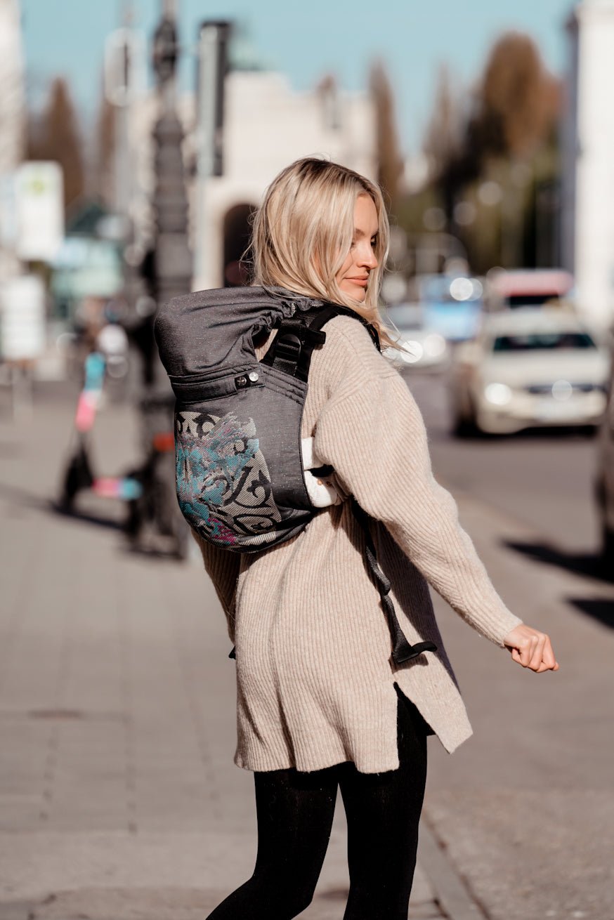 Mystiek, mysterieus en zijdezacht - dat is alles Onbu Leeuwin Alexandra. Dankzij 99% bamboeviscose voelt dit aan Draagzak heerlijk zijdezacht en ondersteunt je baby, die al veilig kan zitten, rondom stabiel en veilig. Ondanks het hoge oppervlaktegewicht is het geen katoen Onbu Fantastisch knuffelig en ideaal voor grotere baby's.
