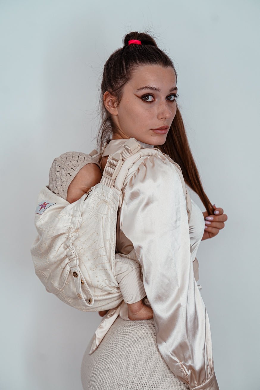 De Draagzak Weegschaal is niet alleen prachtig om naar te kijken en symboliseert het sterrenbeeld Weegschaal in fantastisch glanzend goud, maar biedt je ook ongelooflijk draagcomfort! Met de beste materiaalmix van 45% zijdezachte, soepele bamboeviscose en 54% knuffelig biologisch katoen en een vleugje glitter zit het heerlijk comfortabel voor jou en je baby.