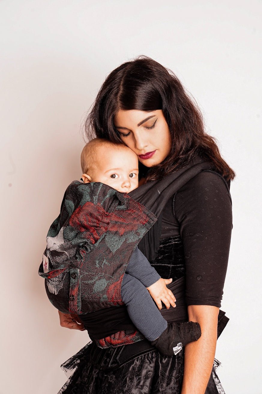 Breng rock-'n-roll in je dagelijks leven met de TaiTai-Draagzak in "Skulls N Roses"-ontwerp! De gewatteerde bandjes voor