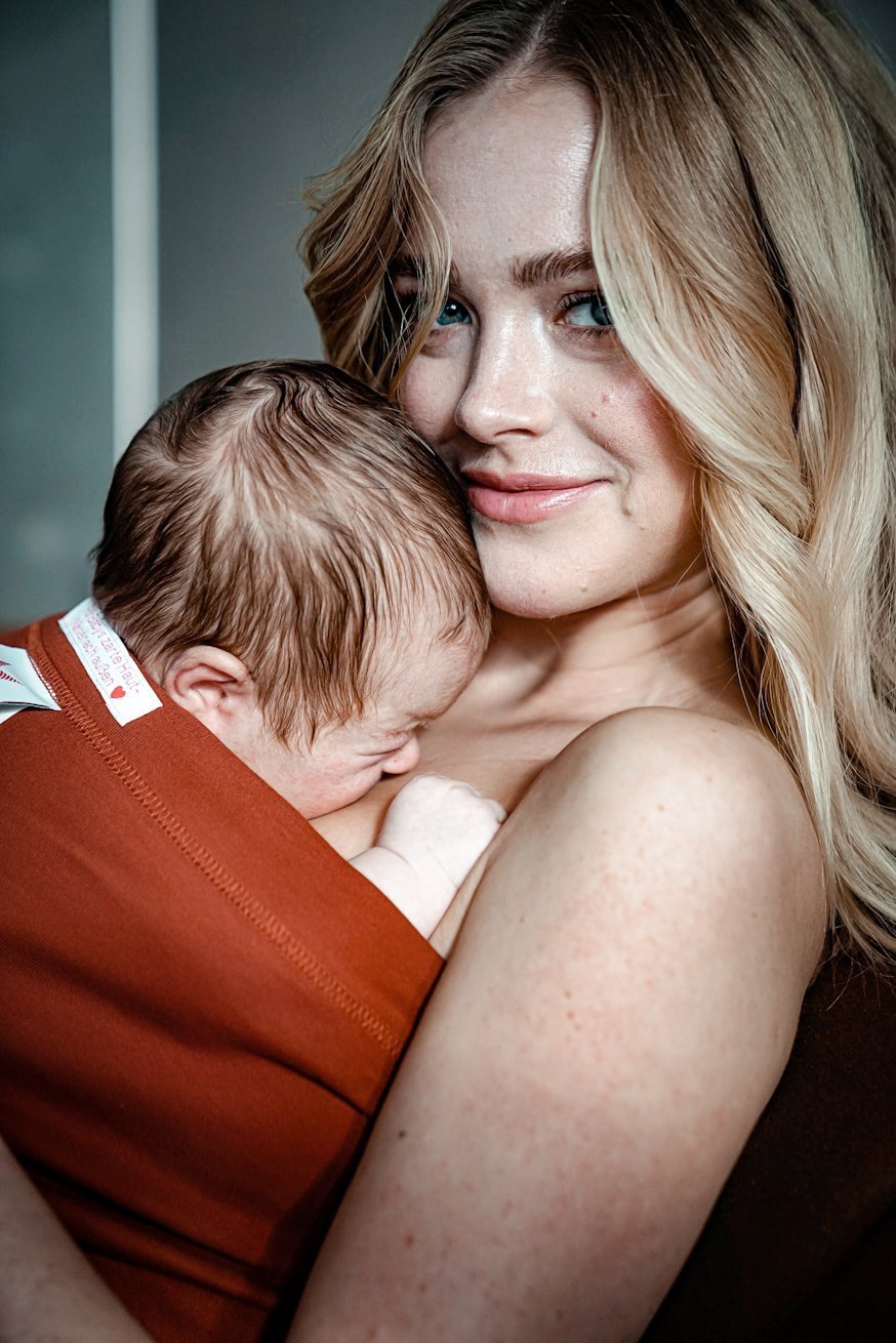 Het hechtings- en melkbevorderende ‘knuffelhormoon’ oxytocine komt vrij en de borstvoedingshormonen komen op gang! Ons bondingshirt kan ook gebruikt worden als zogenaamde “keizersnedetop” tijdens keizersnedebevallingen. Uw baby wordt direct na de keizersnede op uw borst gelegd en veilig in ons bondingshirt gewikkeld terwijl u verzorgd wordt.