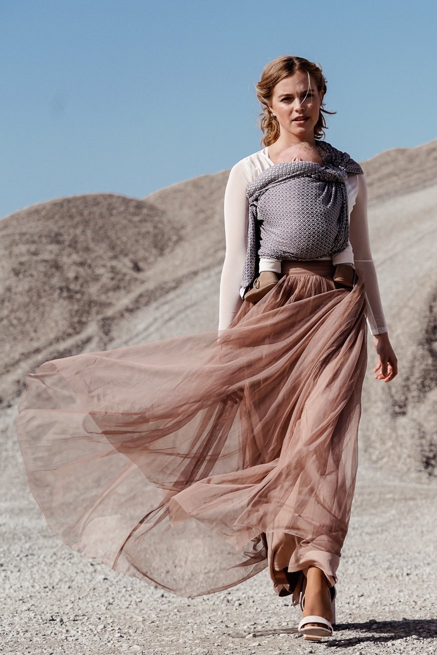 100 % Easy Care biologisch katoen en beste Jacquard Webung maken deze kokadi een heerlijk gemakkelijke droom voor je baby en jou. Vanwege het gewicht van 170 g/m² is onze Kokadi Heart2heart Stone Sling al geschikt voor zeer kleine en lichte baby's. Dus je kunt je pasgeborene al intiem geknuffeld dragen en prachtige bindingsmomenten ervaren.