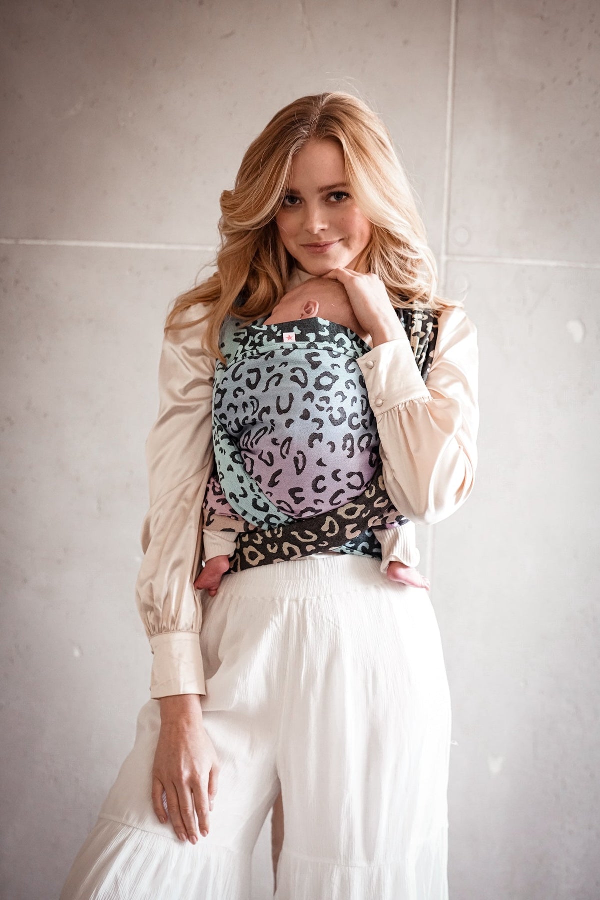 Met de Vickyfari -sling wordt het dragen van je baby fantastisch mooi en de absolute mode -statement! Urbaner, trendy leo-print in combinatie met de populaire cultkleurcursus van Vicky, legaal u en je geliefde op.