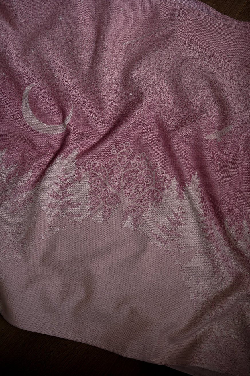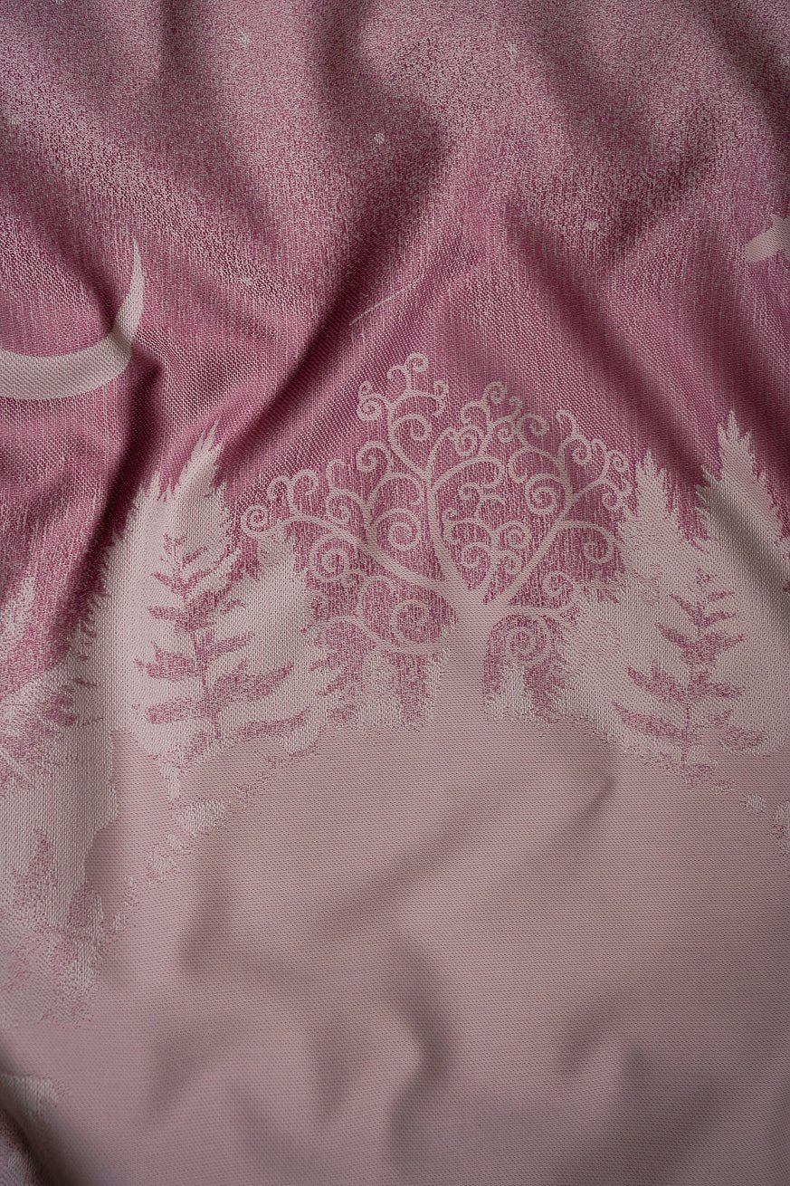 Ein Hauch Magie, gewoben in zarte Stoffbahnen – unser Tragetuch „Wald der Wölfe Elaine“ lässt dich und dein Baby in eine Traumwelt eintauchen. Inmitten von zarten Rosa- und Violetttönen erwacht ein Design zum Leben, das sanfter nicht sein könnte – und doch eine Kraft in sich trägt, die man nur spürt, wenn man ganz still ist: