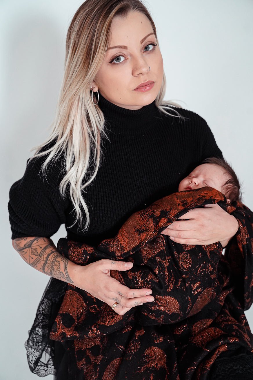 Dit KOKADI Skulls x Florian knuffeldeken is pure sensualiteit met attitude. Het diepzwarte materiaal, afgewisseld met glinsterende koperkleurige schedels, combineert tegenstellingen die elkaar aantrekken: kracht en tederheid, duisternis en glans. Skulls x Florian is geen gewone sjaal. Het is een statement van elegantie, rebellie en veiligheid tegelijk.
