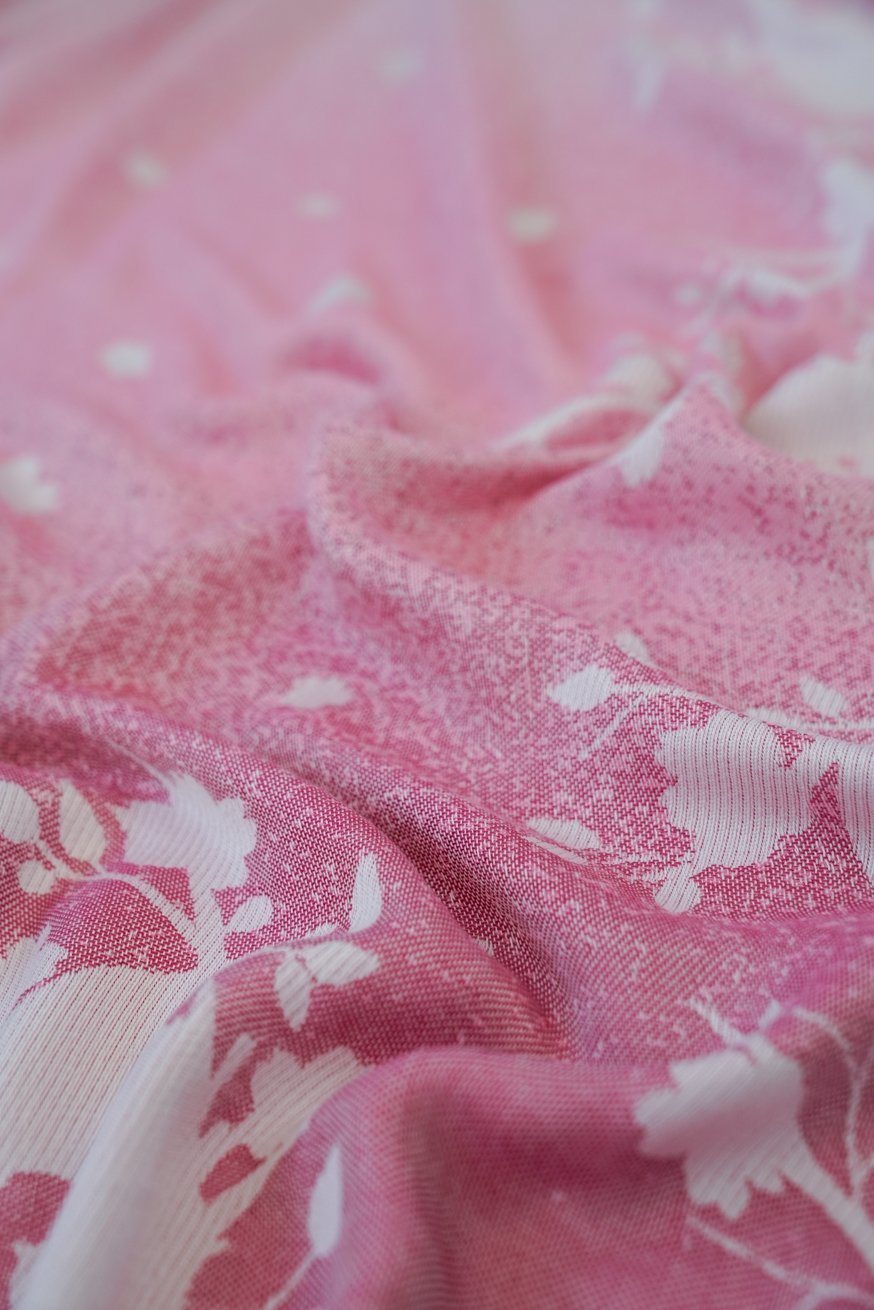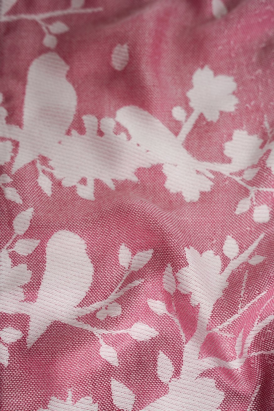 Delicate vogels dansen op soft pink - een hemels lichtontwerp dat de veiligheid uitstraalt. De stof voelt als een kus op de huid.
